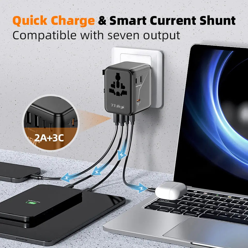 77digi 45W 3 Type-C + 2 USB A Travel Adapter