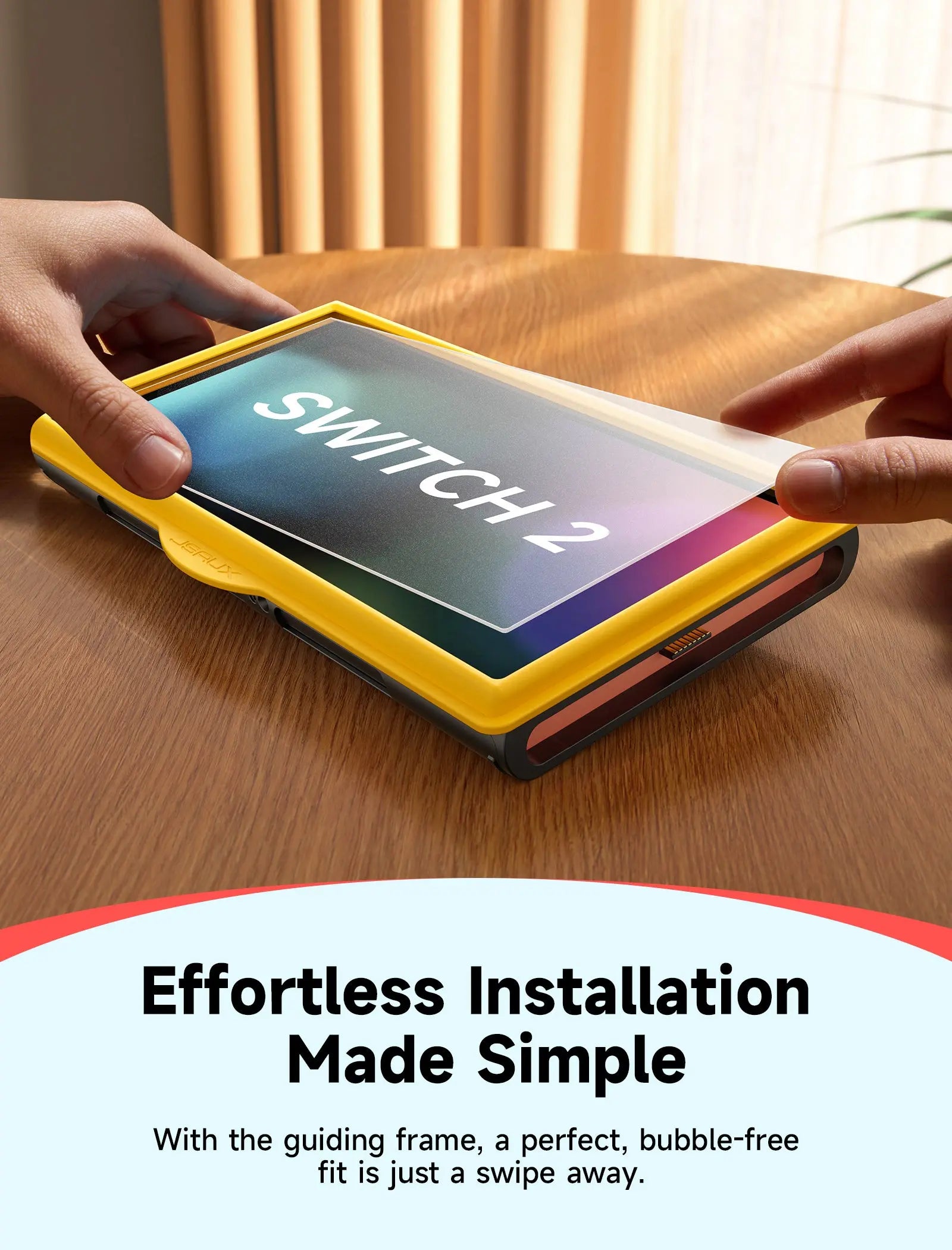 ✔️ Easy Bubble-Free Installation: Even if it’s your first time, the included guide frame helps you apply this screen protector for Nintendo Switch 2 in seconds—smooth, aligned, and bubble-free, perfect for a quick setup right after unboxing. NOTE: Before applying the screen protector, ensure the Guiding Frame is securely fixed to prevent misalignment during application.