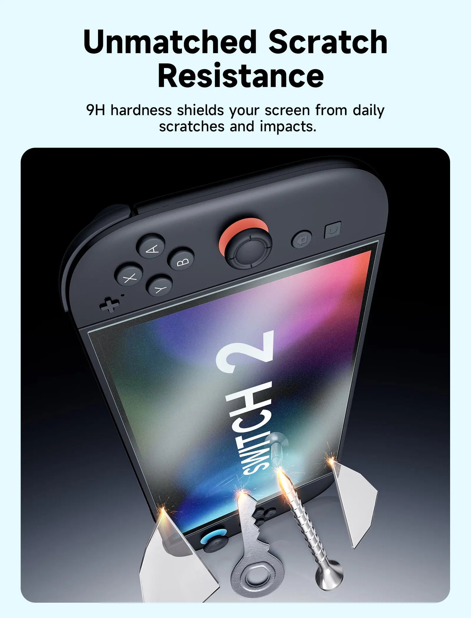 ✔️ Anti-Glare Design: The matte finish of this screen protector for Nintendo Switch 2 minimizes distracting reflections—even under direct sunlight or bright indoor lights, your screen remains clearly visible.