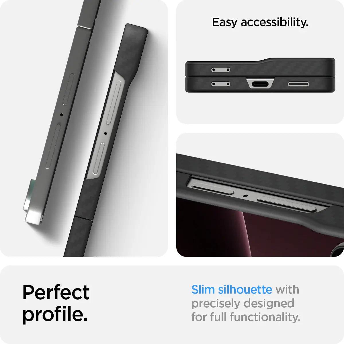 Premium Modern Design - Premium material aramid fibre provides slim design and strong protection. Slim Protection as slim as it gets - Ultra slim design that keeps the original look of the device. Good Grip - Aramid fibre provides ultra-slim design and great protection to Galaxy Z Flip 7.