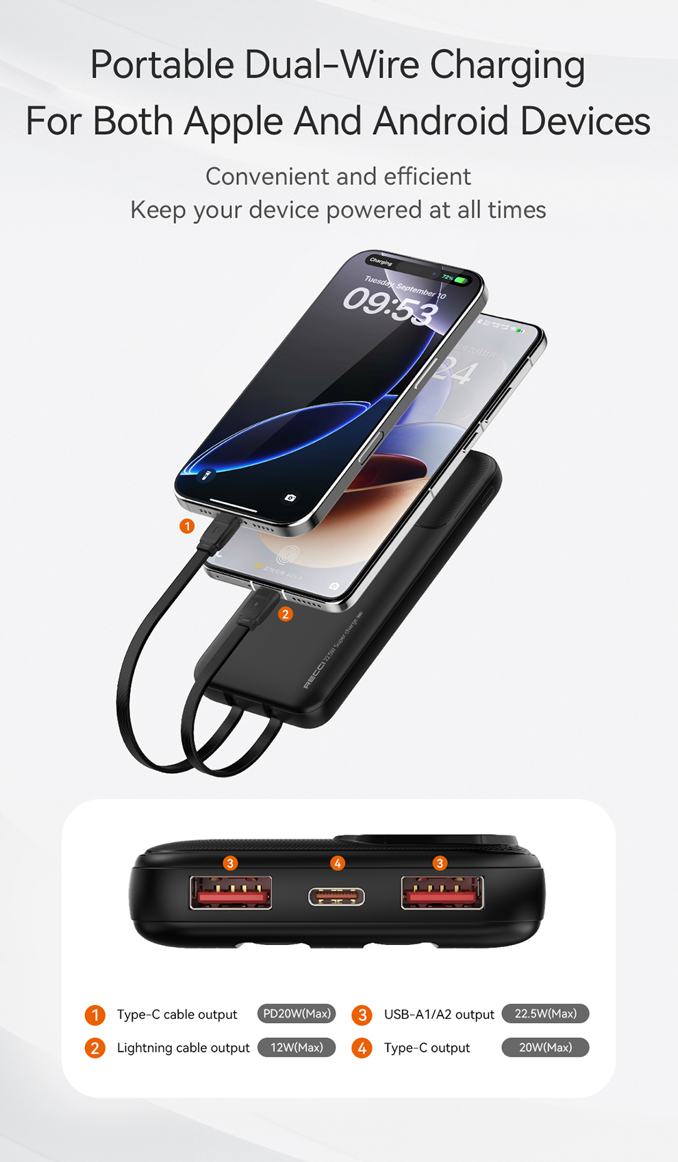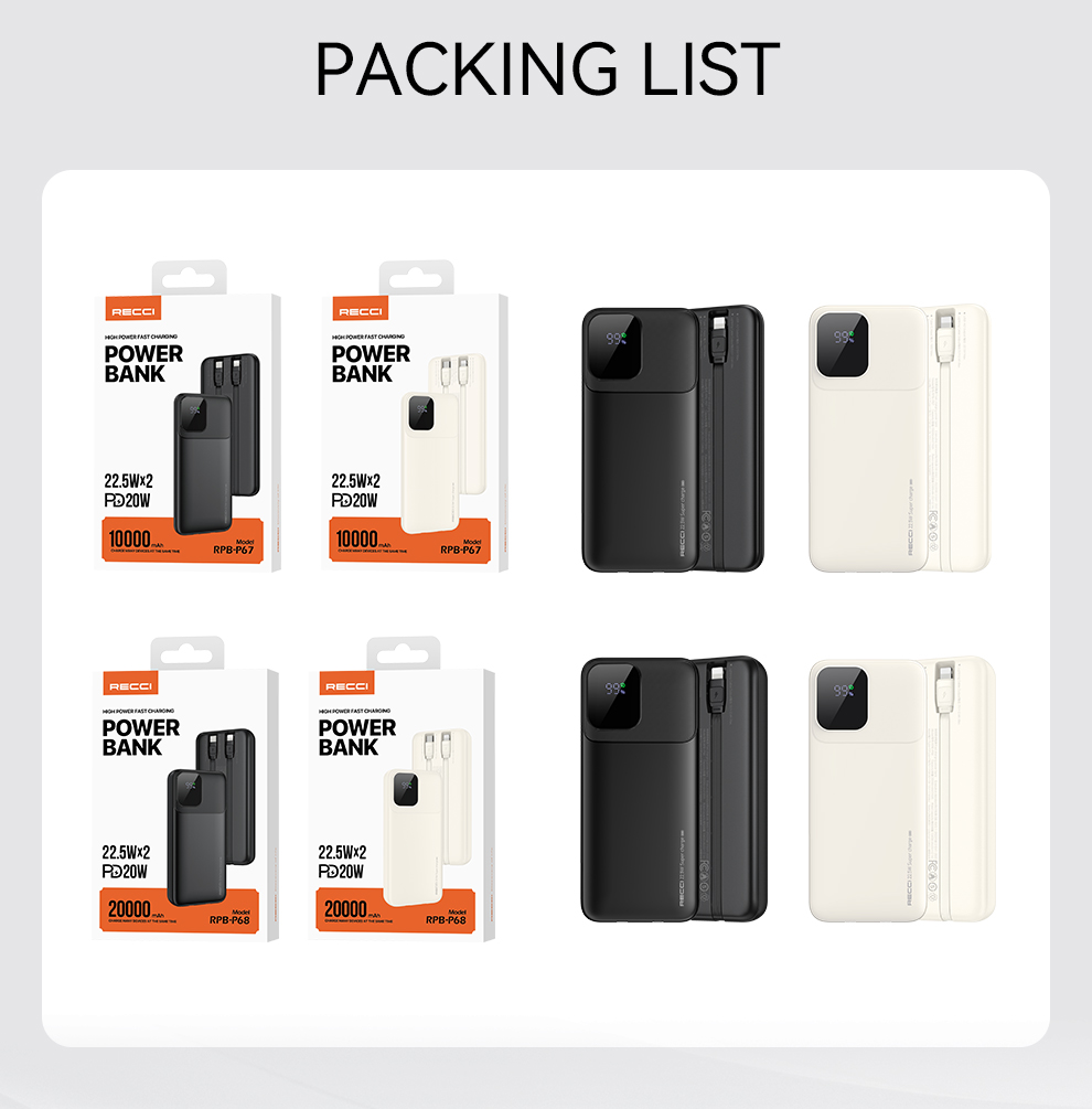 Recci 20000mAh Power Bank 22.5W Built-In USB C Cable [CCC Certified] (RPB-P68)