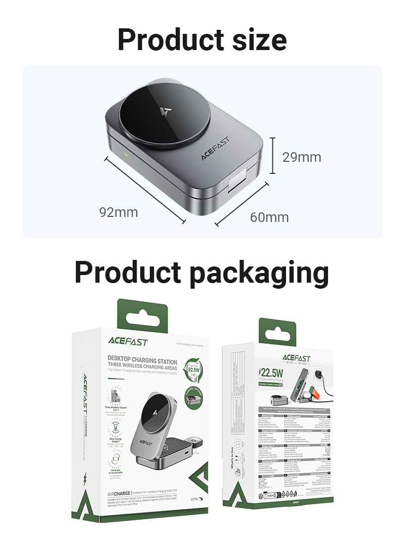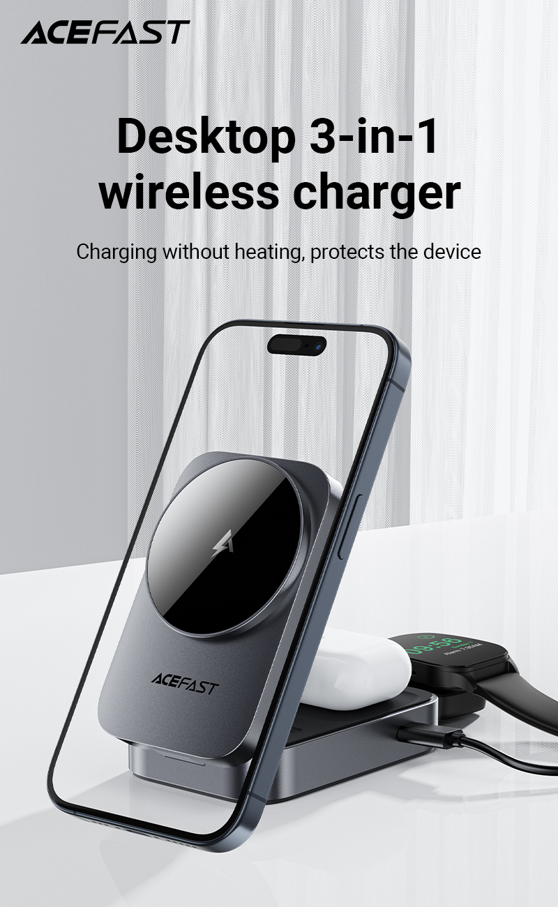Acefast Desktop 3-in-1 Wireless Charging Station 22.5W Max Foldable Magnetic Charger Holder E22