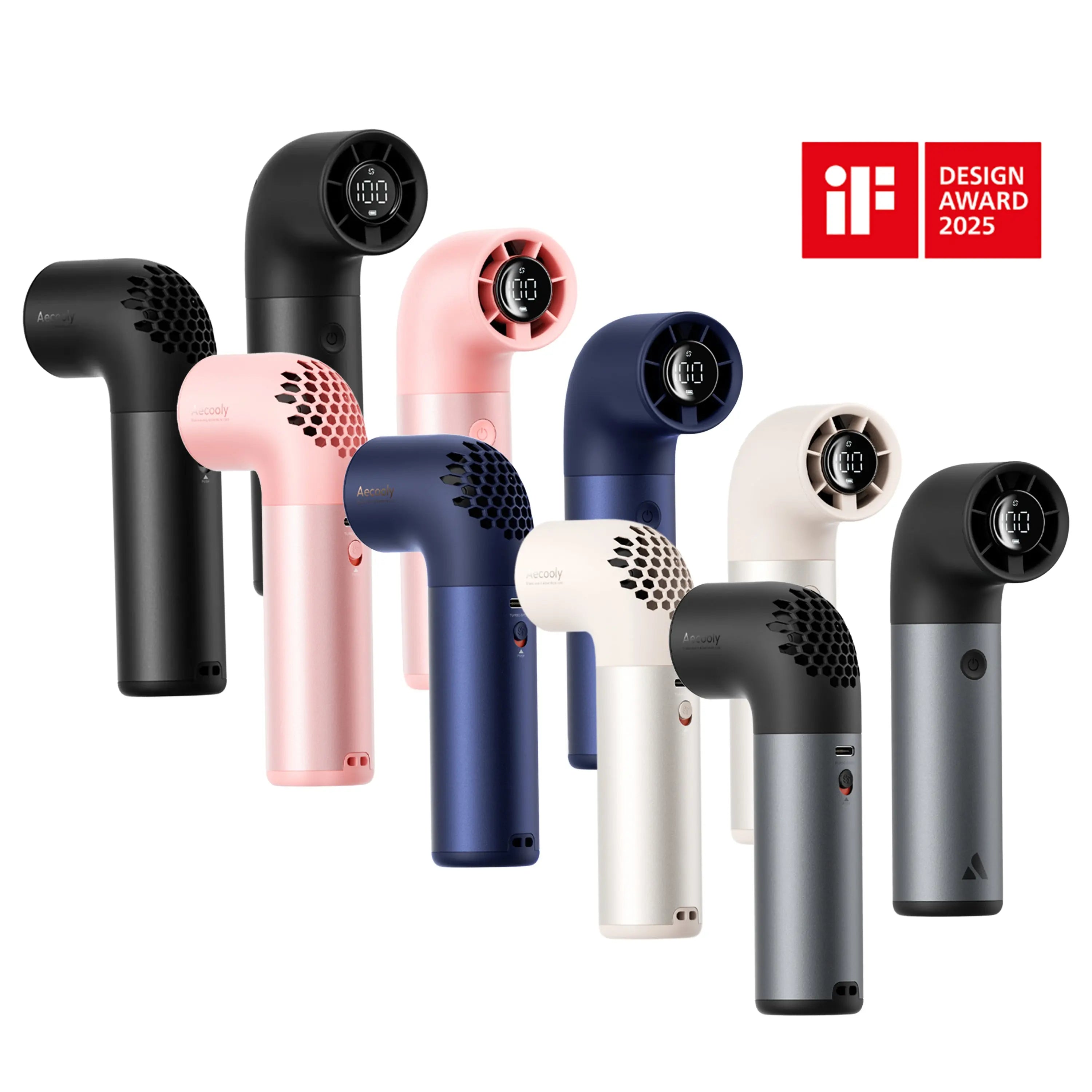 Aecooly Aero Pro Handheld Fan features a compact R-shaped design, offering a comfortable and ergonomic grip perfect for outdoor settings. Its sleek, modern form fits naturally into activities like picnics, hiking, or beach days while delivering powerful airflow for quick cooling. Designed for both function and style, it enhances your outdoor experience with effective performance and subtle elegance.