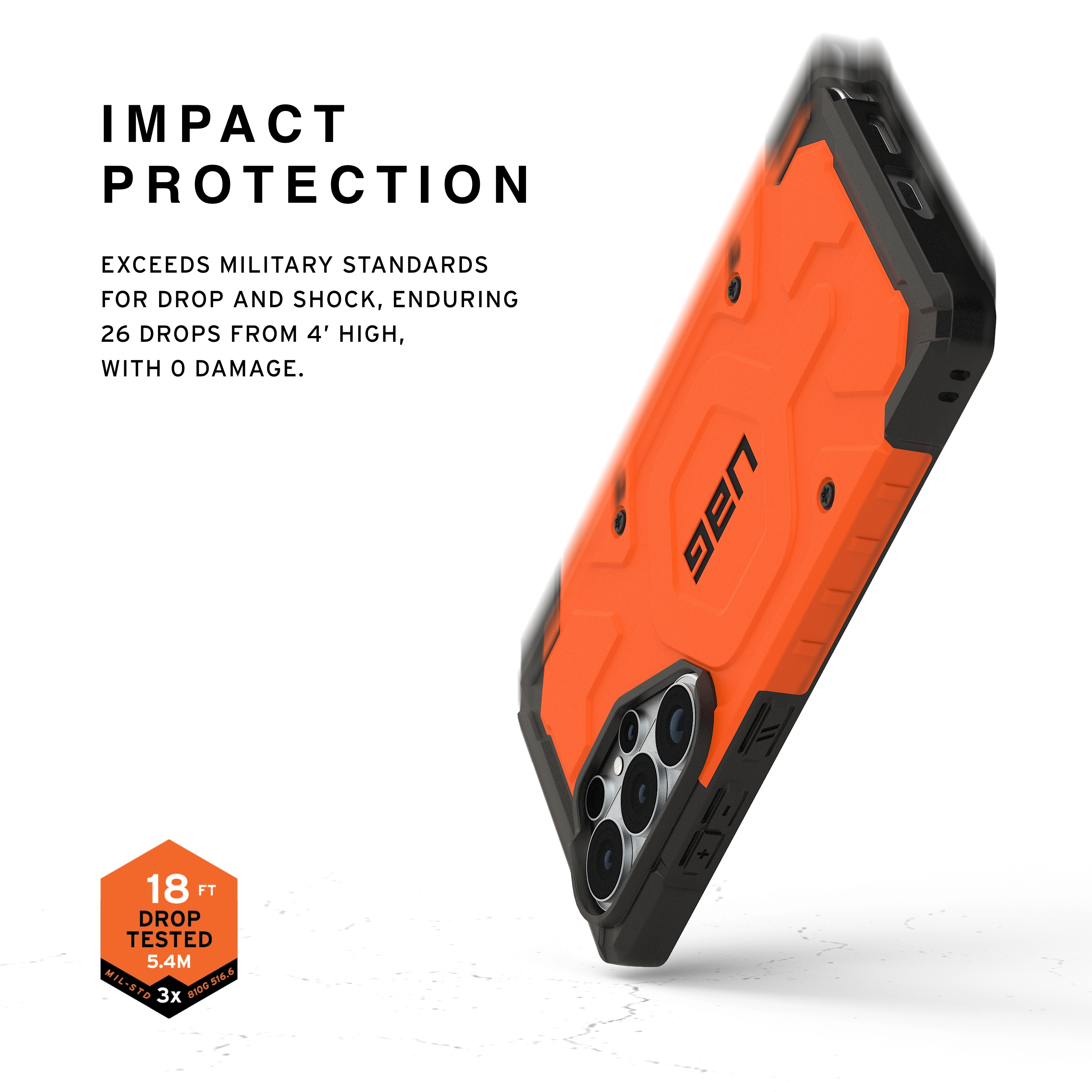 Meets military drop test standards [MIL STD 810G 516.6] providing enhanced shock protection.