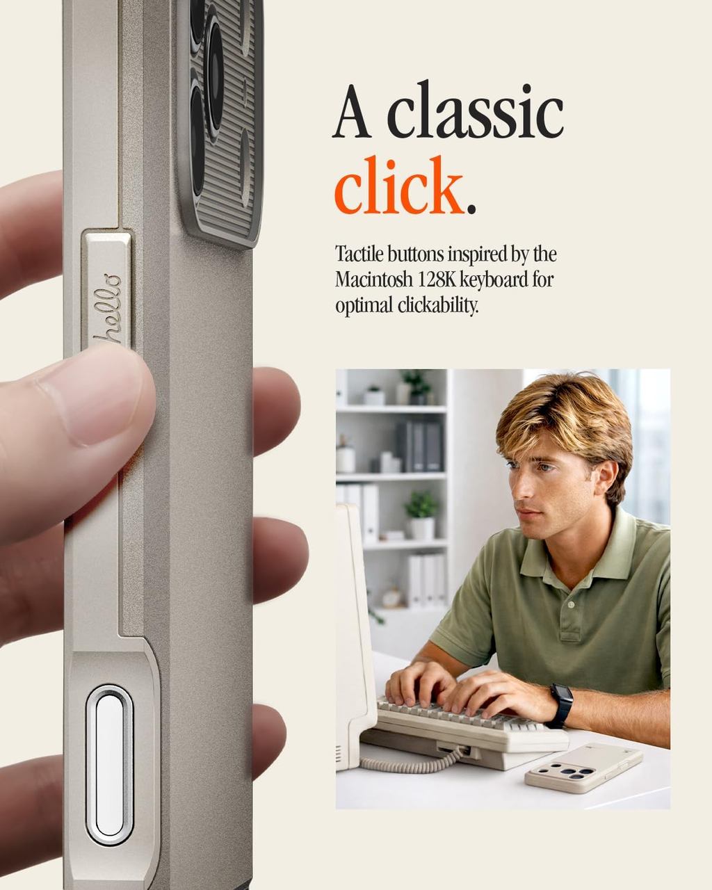 Give your phone a touch of retro charm with the Classic LS. This case pays homage to the legendary Macintosh 128K, featuring a floppy disk slot accent and a case shape inspired by the iconic computer. The reimagined Spigen logo and vintage keyboard keycaps complete the throwback look.