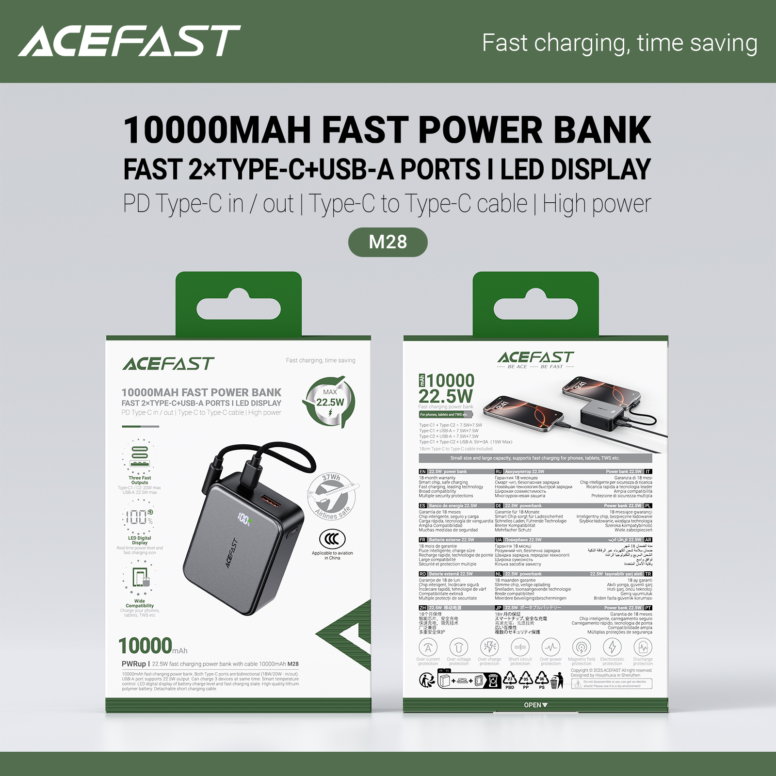 Acefast 10000mAh Power Bank 22.5W Fast Charging Portable Charger [CCC Certified] M28