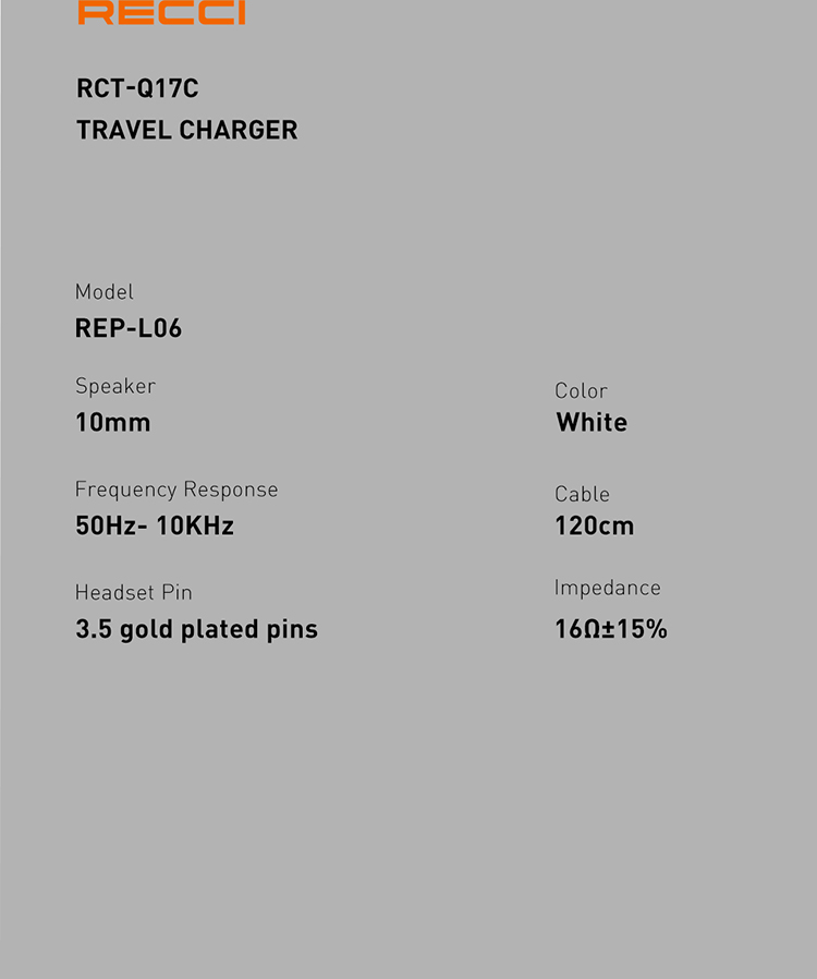 Recci 3.5mm Wired In ear Earpiece REP-L06