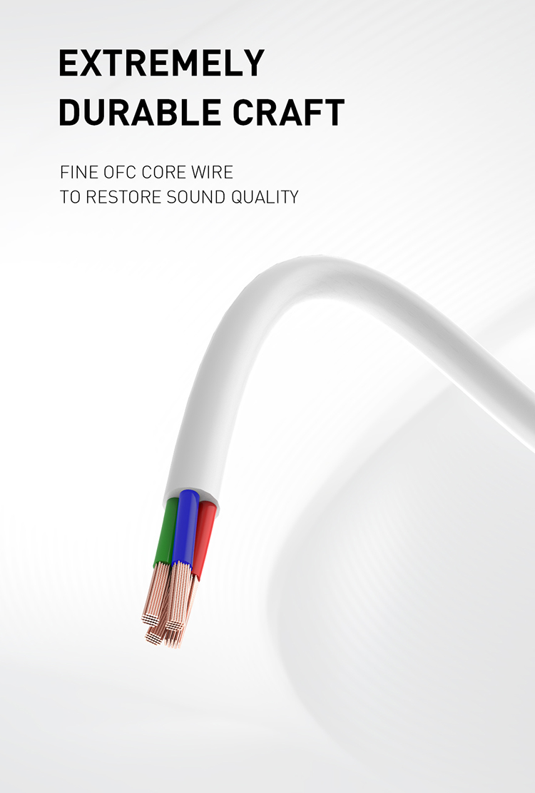 White earphones with 10mm dynamic speaker, 120cm TPE-jacketed cable, 50Hz-10kHz frequency response, 16Ω±15% impedance, and 3.5mm gold-plated headset pin for clear sound and reliable connection.