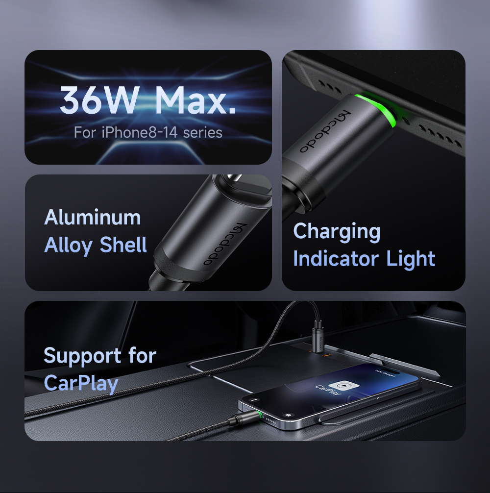 1. 36W Fast Charging: Delivers up to 36W max output for quick and efficient power delivery.