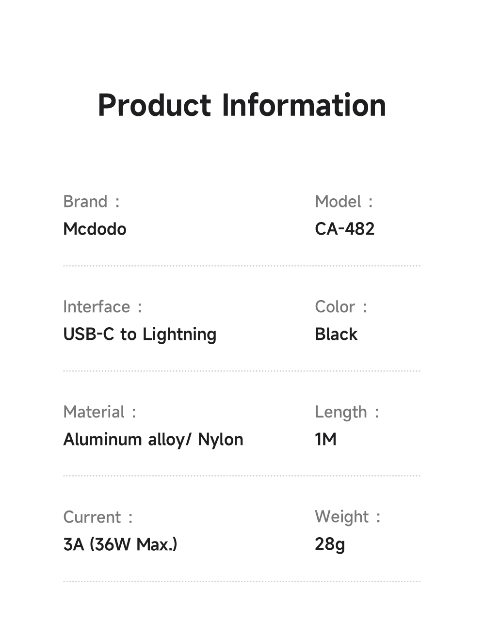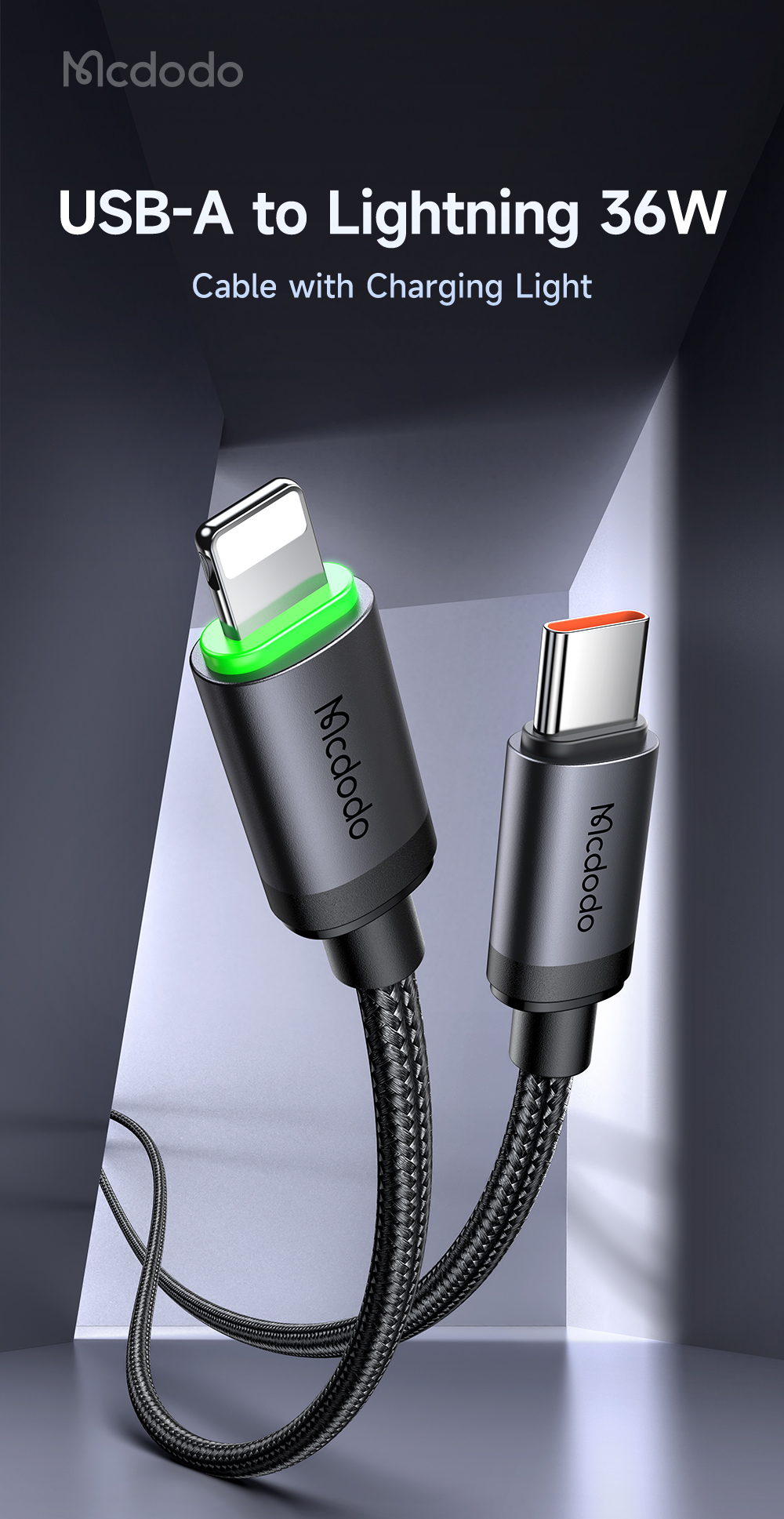 Mcdodo USB-C to Lightning Cable 36W Fast Charging Cable with Charging Light (1M/3M) CA-4820/CA-4821