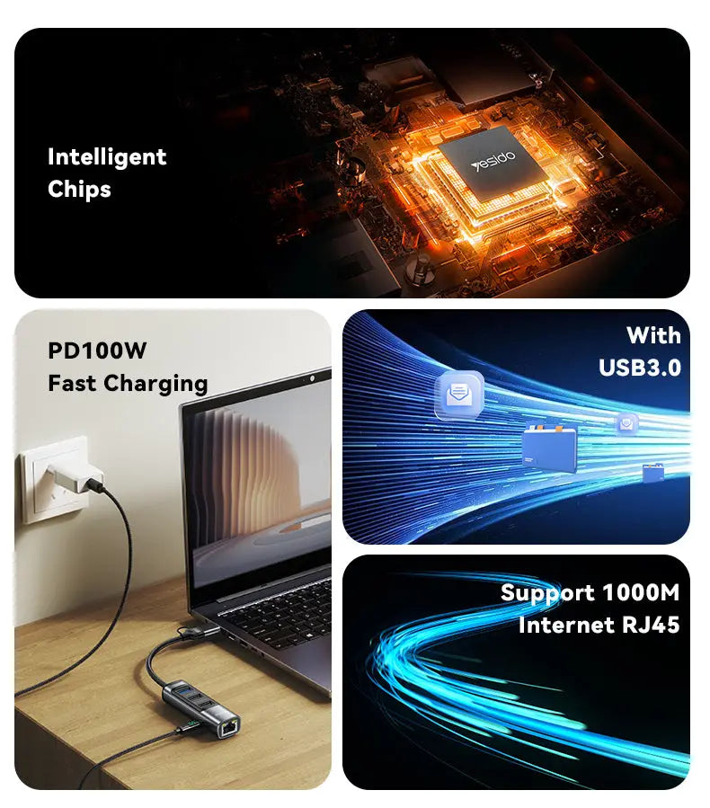 YESIDO HUB 5 in 2 USB Ethernet HB21