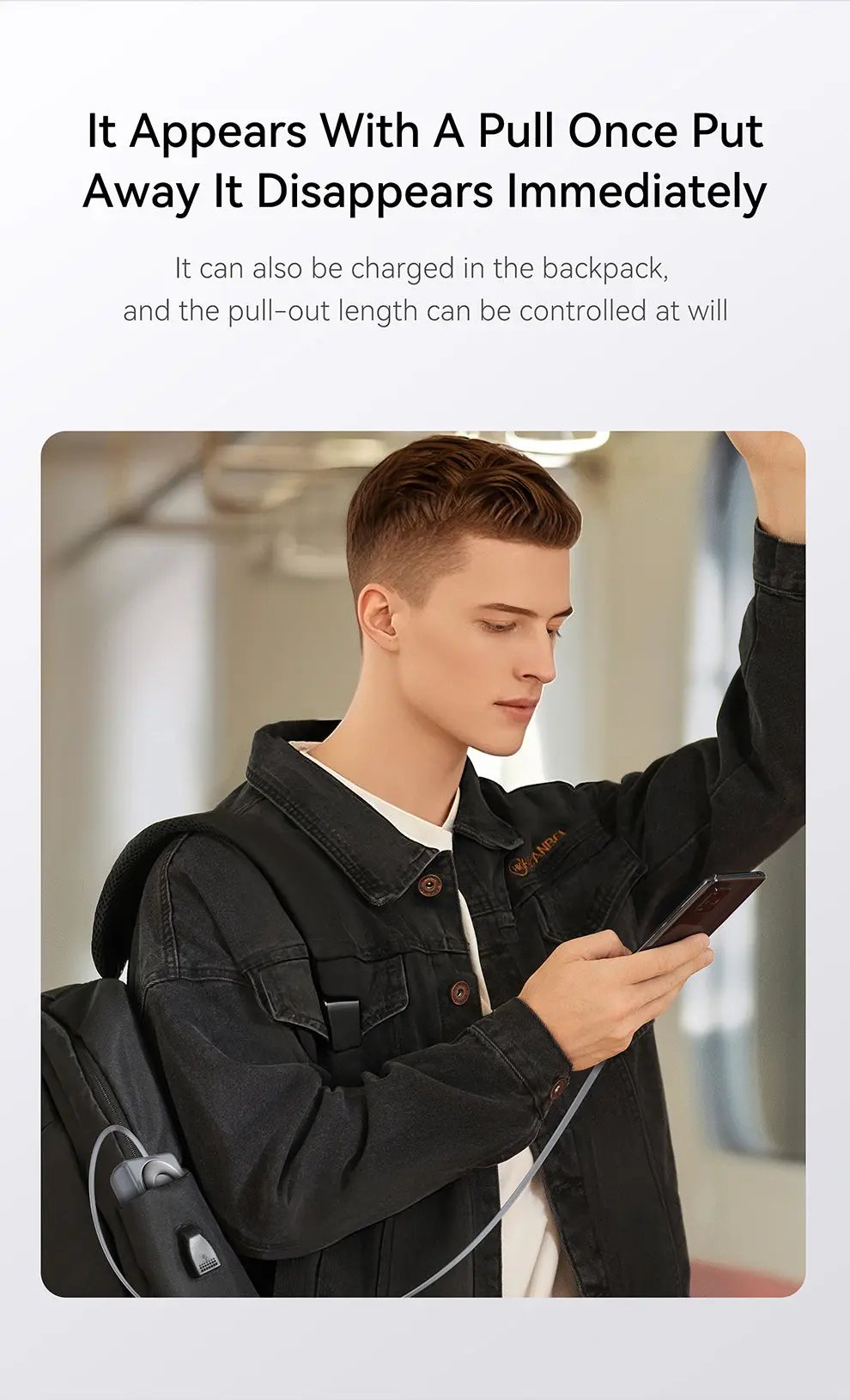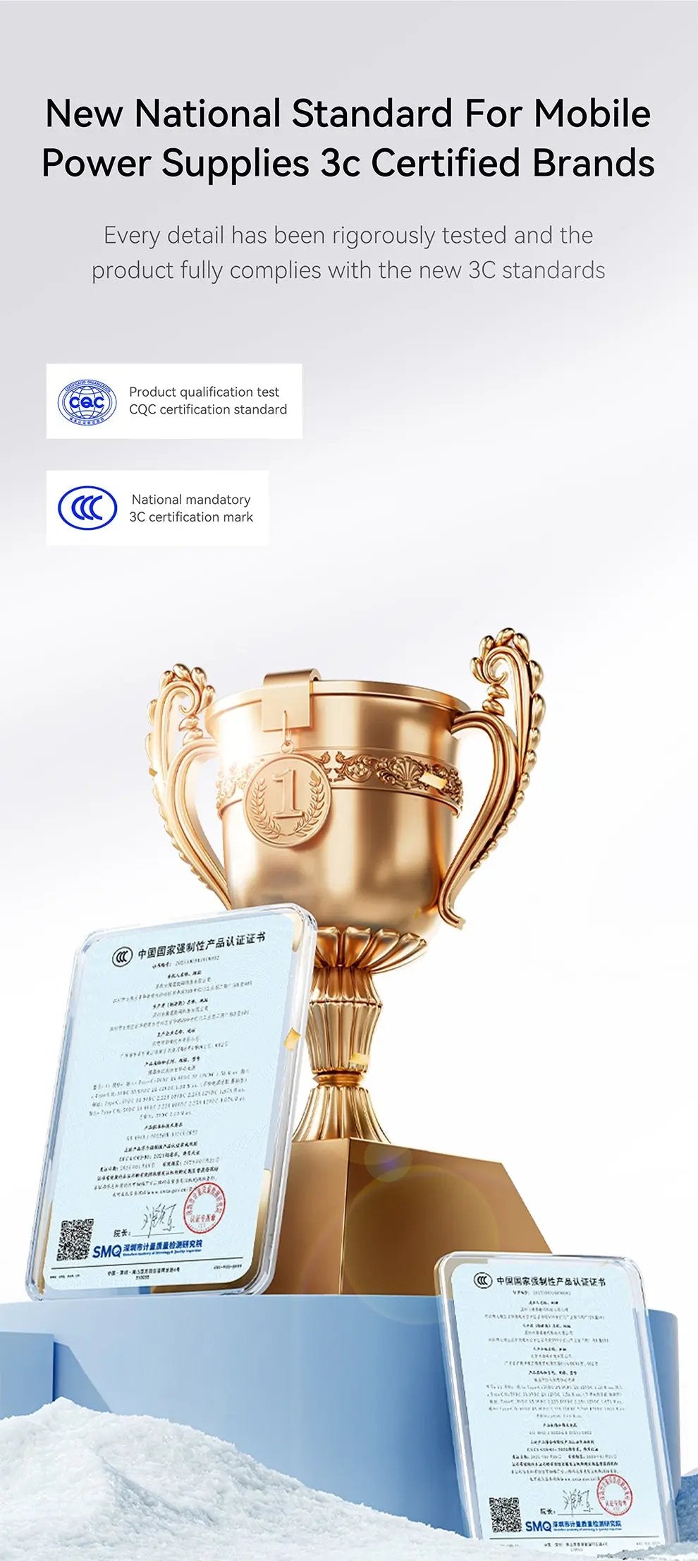 Recci 20000mAh Power Bank PD 65W Retractable USB C Cable with 3C/CCC Certification Approved in China (RPB-P72)